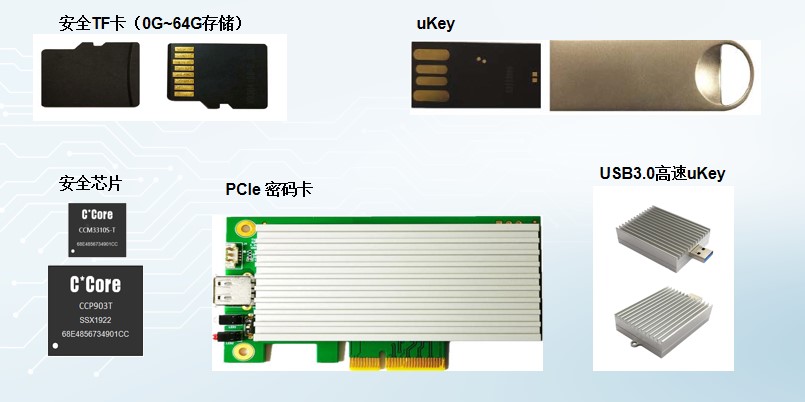 經(jīng)過20多年的厚積薄發(fā),國芯科技在信息安全芯片及模塊領(lǐng)域已擁有多項核心技術(shù)和知識產(chǎn)權(quán)。針對上述難點問題,國芯科技推出了視頻安防安全芯片產(chǎn)品群,該產(chǎn)品群包括安全芯片、安全TF卡、高速USBKey以及PCI-E密碼卡等系列產(chǎn)品,可完美解決視頻安防系統(tǒng)依據(jù)GB 35114標準進行信息安全改造的難點問題。