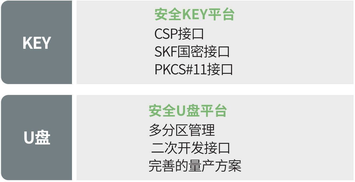 國芯科技安全U盤KEY是集USB KEY和安全U盤功能于一體的產品,下設安全U盤KEY及大容量安全U盤KEY兩款產品,可廣泛應用在PKI認證、數字簽名、數據(實時)加解密和數據安全存儲等方面。